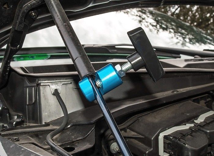 It is important to follow the manufacturer's instructions when installing lift support, as improper installation can cause damage to the strut and lift support. After installing the strut holding hood, you can remove clamp, that was securing the old strut.