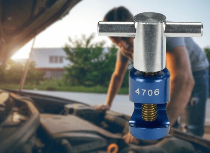 The AES Industries 33285 Hood and Trunk Lift Support Clamp is designed to provide a secure and safe way to hold faulty or weak gas-charged lift supports. It features an aluminum body with a soft brass core shaft contact tip for strength without marring the surface, and it's anodized blue to resist corrosion from outdoor elements and an ergonomic plastic handle.