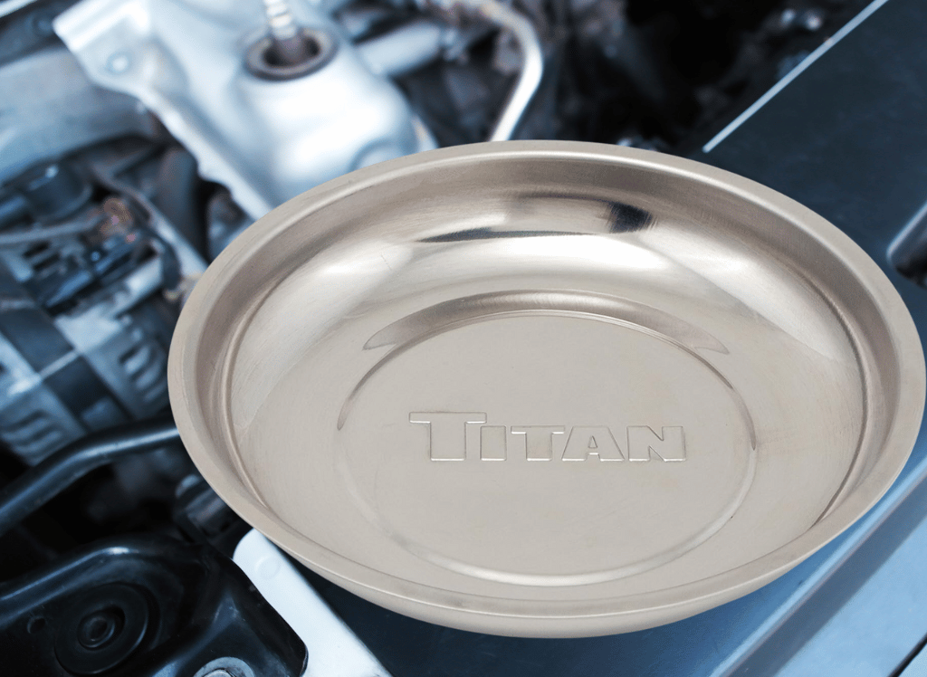 The Titan Round Magnetic Parts Tray is the ideal solution for keeping all your parts, hardware, and fasteners in one place. With a 5-7/8" diameter and 7/8" depth, this magnetic tray offers ample space and depth for holding various items.