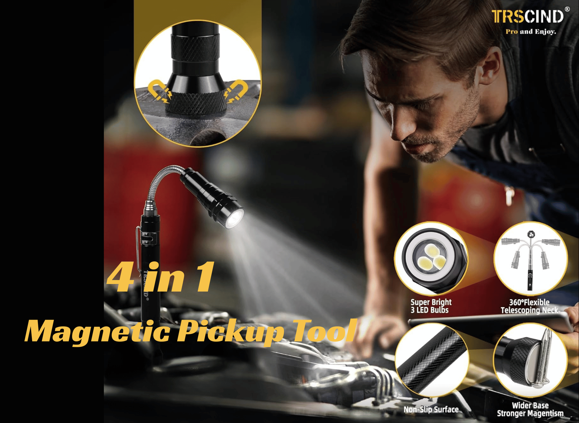Extendable Magnetic Flashlight, 15lb &1lb Pick Up Rod, Inspection Mirror