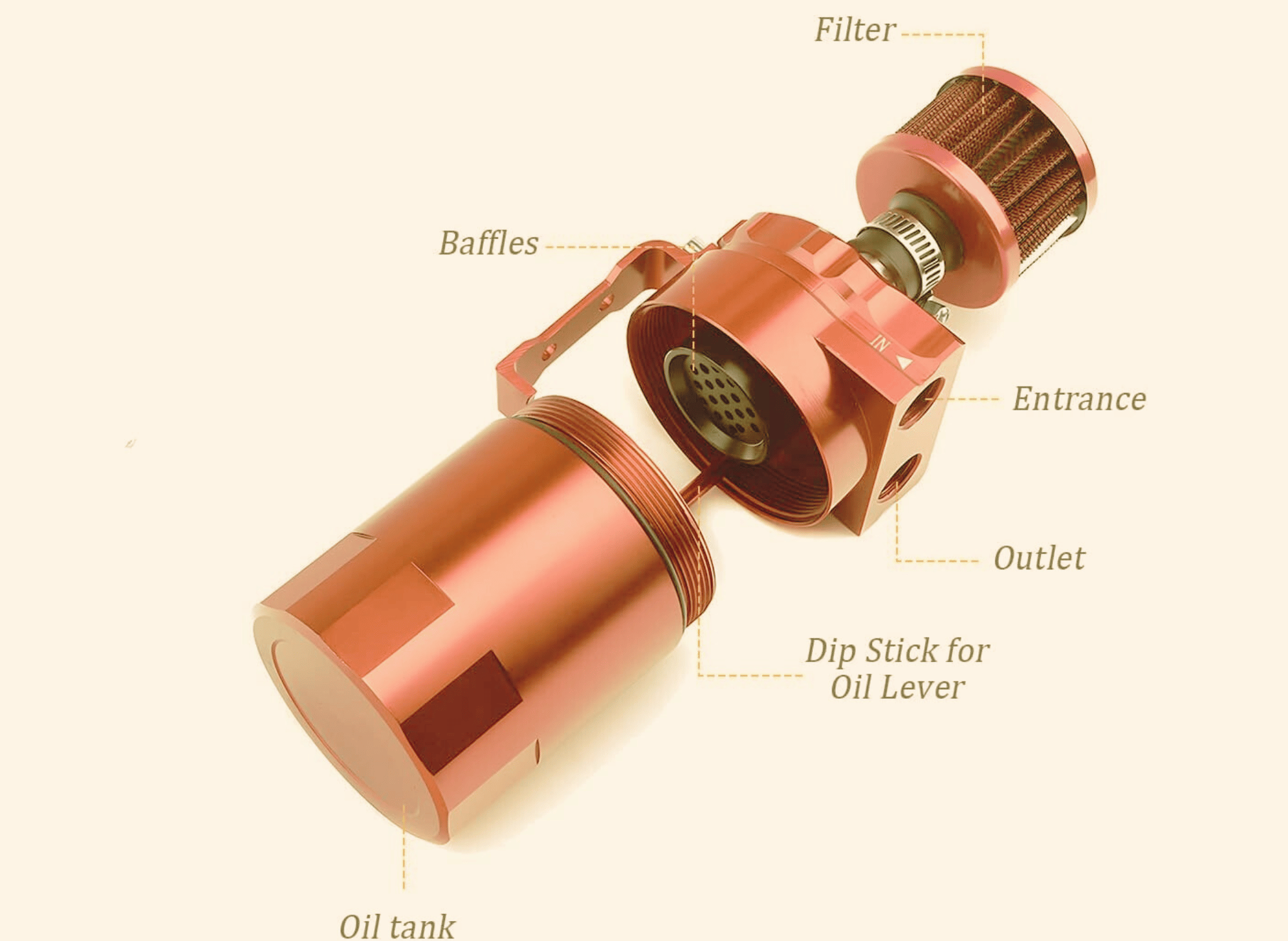 - Efficient Oil Capture: The baffle system can enhance oil separation efficiency, reducing the amount of oil re-entering the engine.