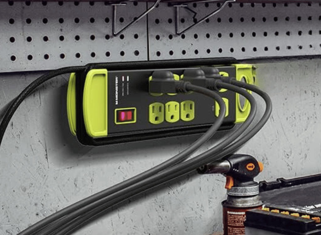 Monster Workshop Heavy-Duty Garage Power Strip Surge Protector is an excellent solution to safeguard your valuable equipment from power surges and outages. This industrial-grade power strip, designed by Monster, boasts an impressive 1200 joules surge protection rating, providing peace of mind for your expensive devices, power tools, and electronics.