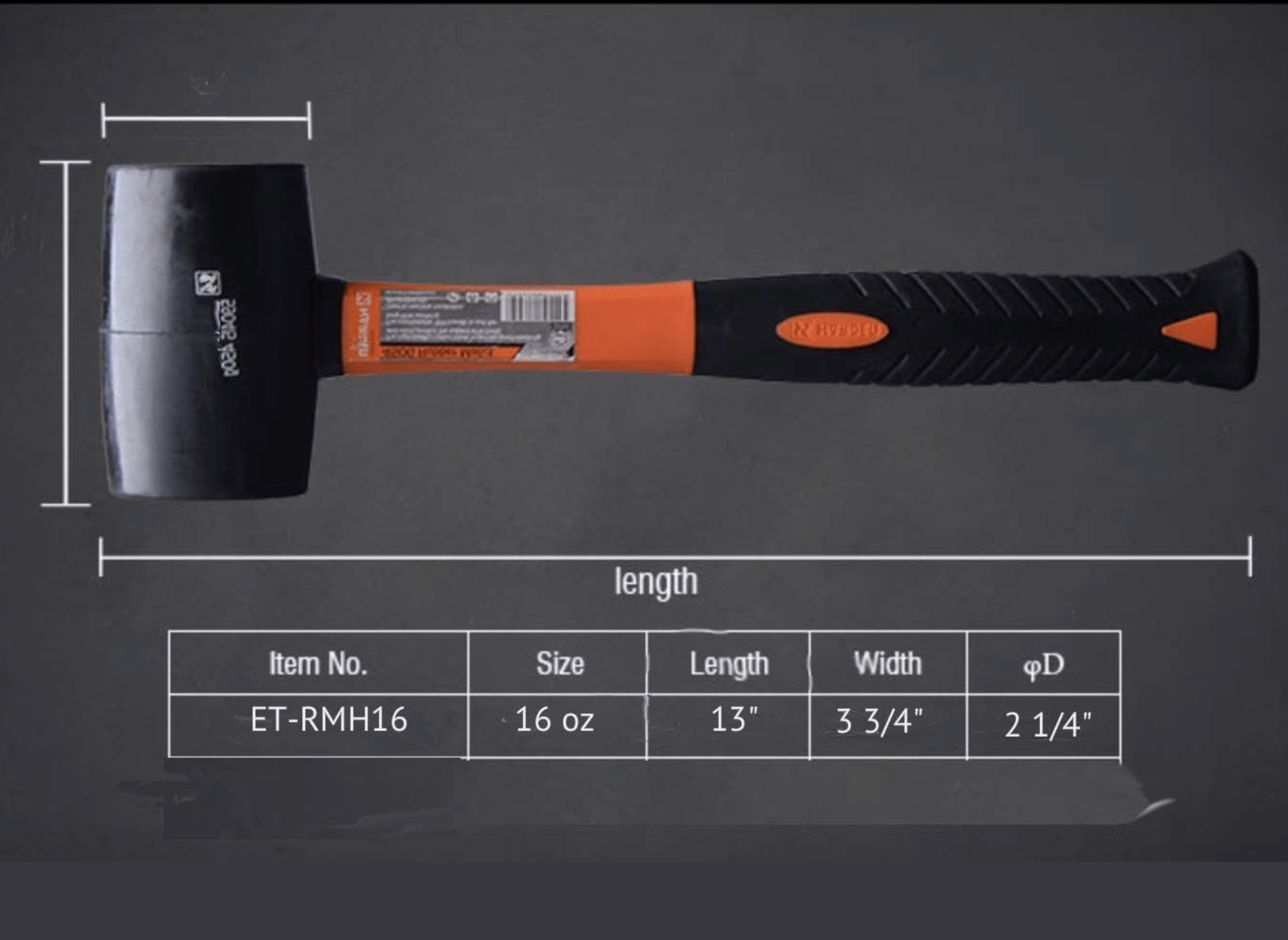 Its ergonomic, non-slip rubber grip adds safety to your work, making it ideal for various applications such as flooring, tent stakes, woodworking, jewelry making, construction, and more. With its lightweight 16-ounce design and sleek black and orange color options, this mallet is perfect for professional and personal use.