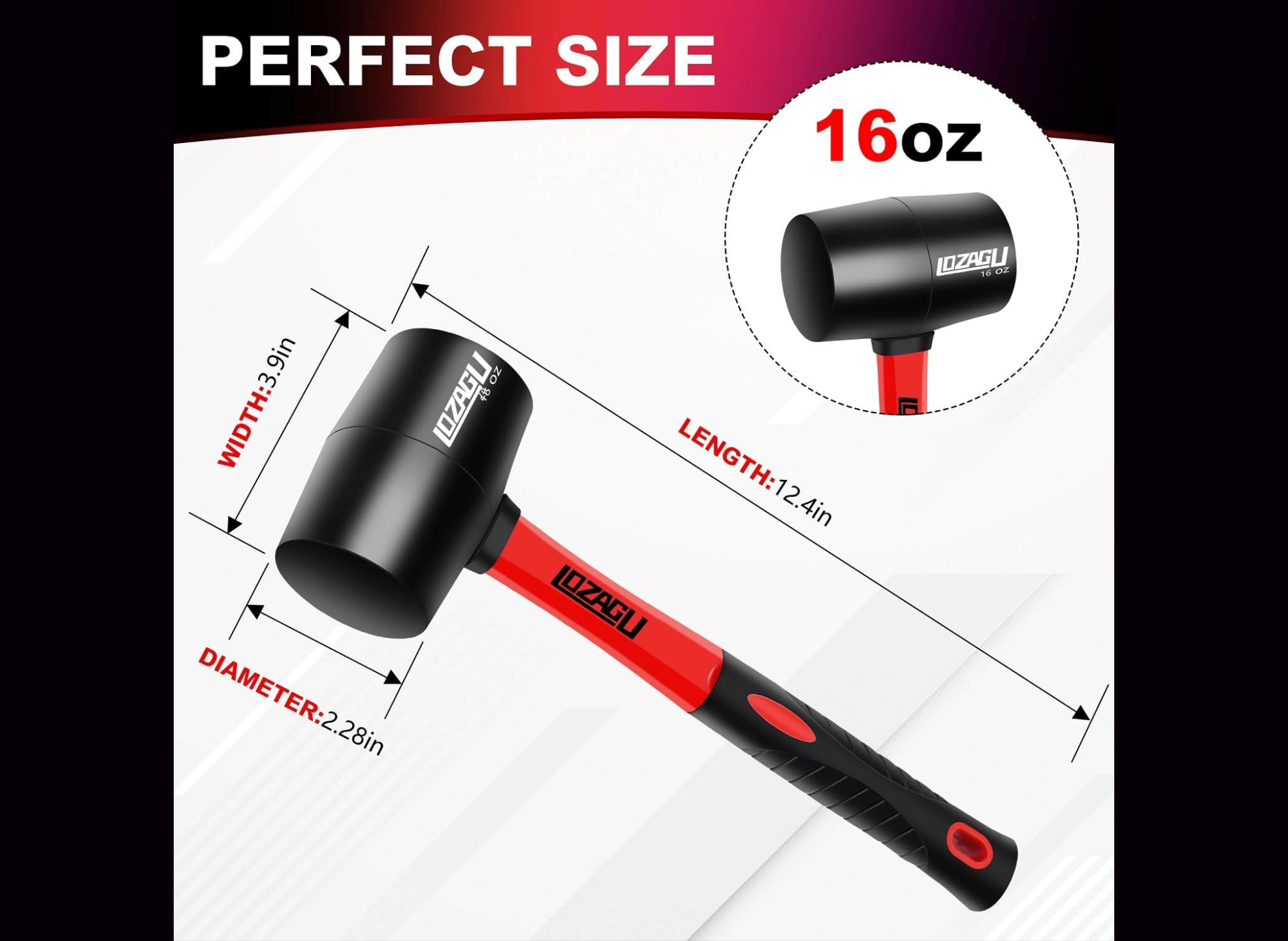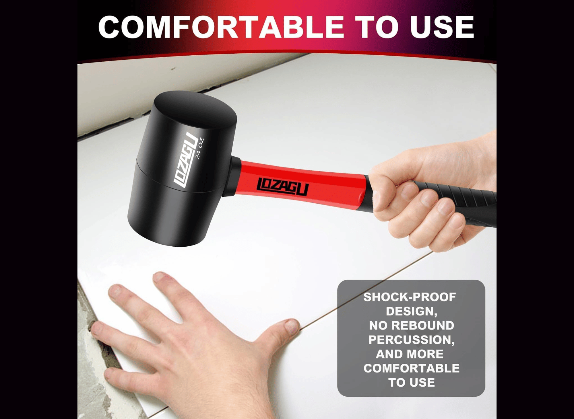 Lozagu 16OZ Rubber Mallet Hammer is a premium and versatile tool for long-term use and durability. With its high-quality rubber head, this hammer can withstand heavy use without succumbing to wear and tear. The rubber's shockproof and wear-resistant properties make it suitable for various tasks.