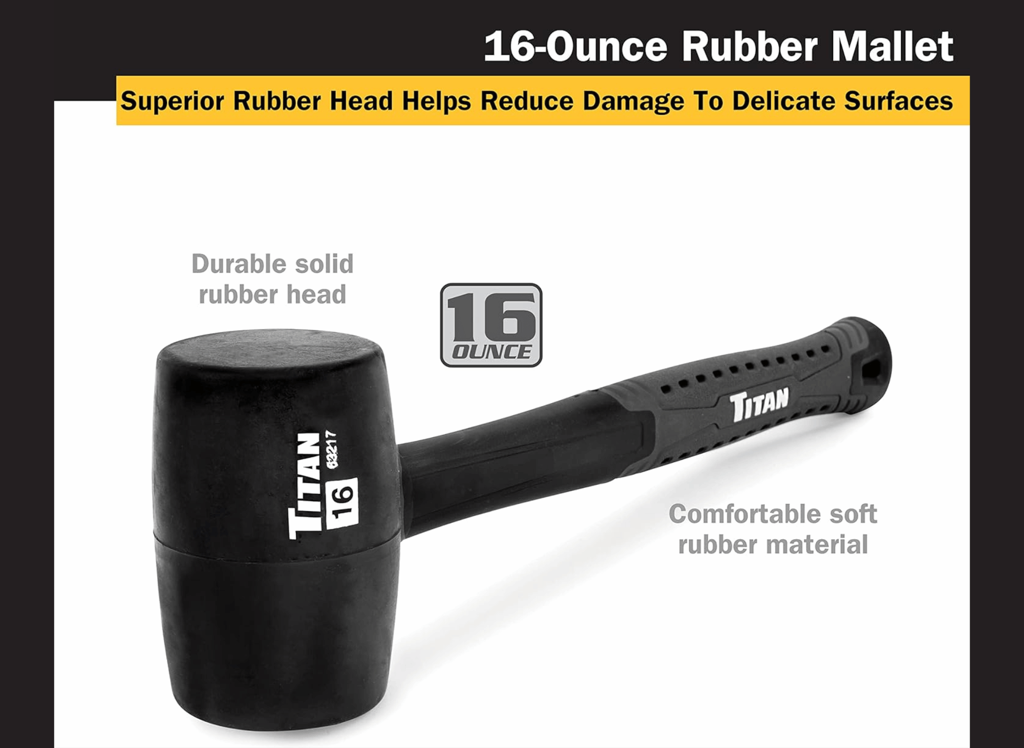 the Titan 16 Oz. Rubber Mallet is the perfect tool for all fabrication, construction, and automotive needs. Made by the trusted brand Titan, this mallet features a non-marking, double-faced solid rubber head that is gentle on surfaces yet still provides precise and powerful strikes, making it ideal for precision work.