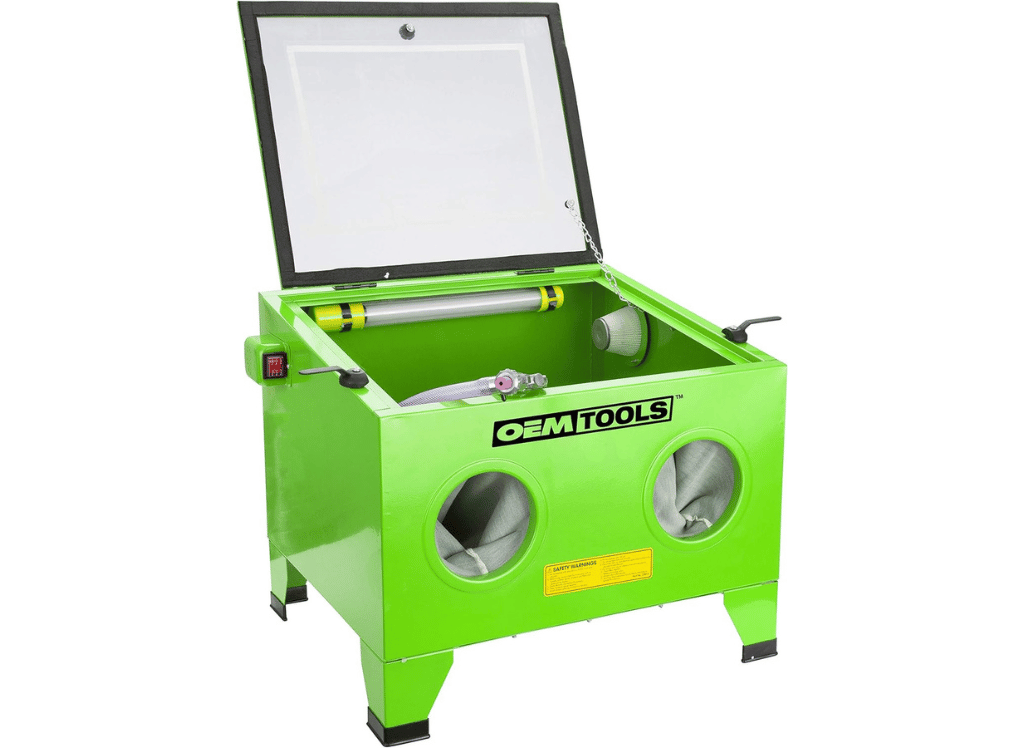 Don't settle for subpar results - choose the OEMTOOLS 24815 Bench Top Abrasive Blast Cabinet Kit for professional-grade abrasive blasting and efficient surface restoration. So, it can be considered one of the best abrasive media blasting cabinets on the market. Upgrade your sandblasting equipment with this top-of-the-line product for superior results every time.