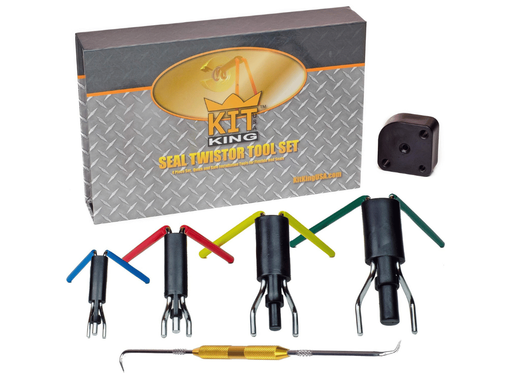 The Kit King Rod Seal Install Tool Set is a comprehensive set of tools designed to install and replace rod seals in hydraulic cylinders seamlessly. This 6-piece tool set includes four sizes of seal twistors, each specifically designed to work with .7-inch to 6.5-inch seals (20mm - 165mm).