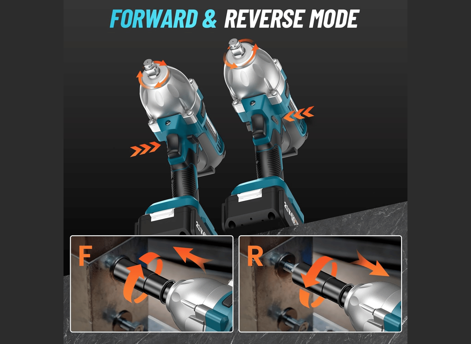 One of the standout features of this tool is its reverse mode with a brake stop device, which automatically reduces speed and torque when loosening nuts or bolts. This prevents fasteners from flying out uncontrollably, ensuring safe operation and making it easier to maintain control during tasks.