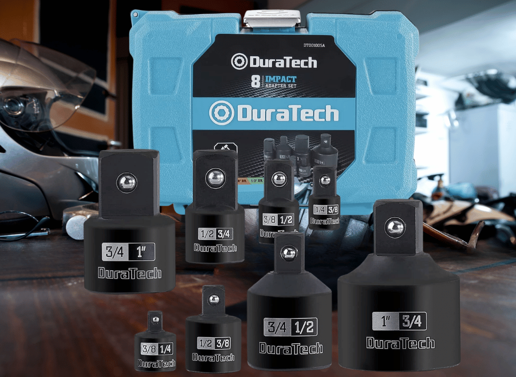 With two reducers in 3/8” female to 1/4” male and 1/2” to 3/8", as well as three adapters in sizes of 1/4" Female to 3/8” Male, 3/8” to 1/2”, and 1/2" to 3/,4 Inch, you will be able to convert all your impacts into different size sockets which makes it an indispensable addition when dealing with complex tasks.