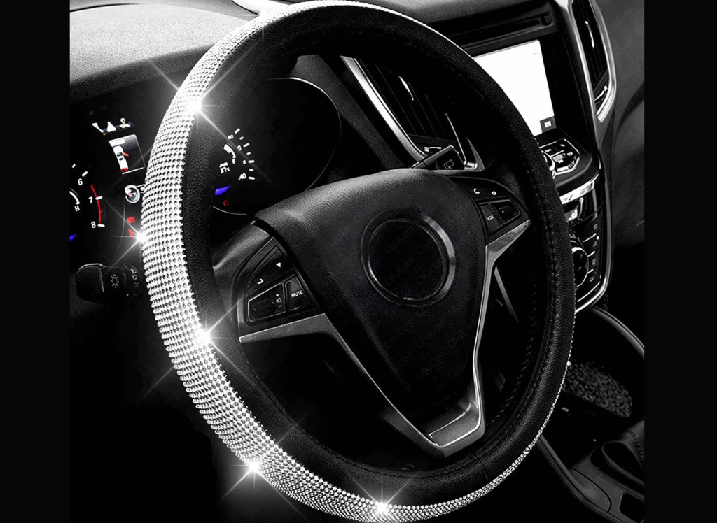 The Diamond Leather Steering Wheel Cover is the perfect way to add a touch of elegance and luxury to your car. Featuring an attractive design with sparkling crystal rhinestones, this cover will look great and provide a comfortable massage for your hands while driving.