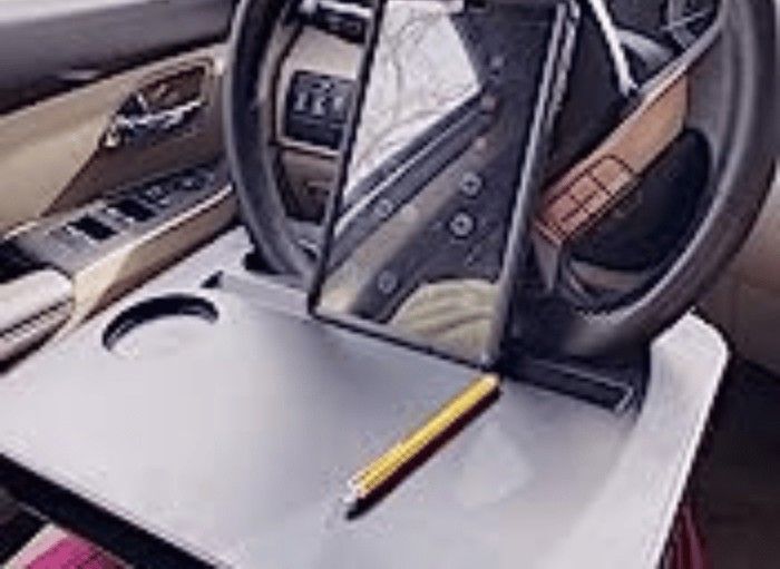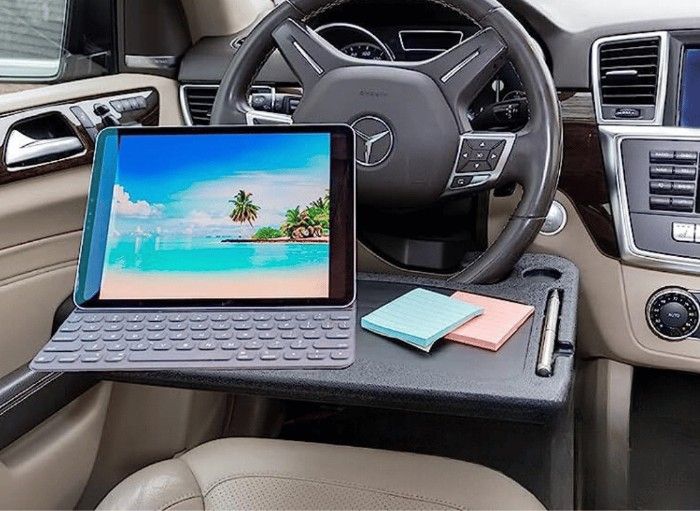 Steering Wheel Desk is a revolutionary desk designed for people on the go. It is a portable desk that fits right onto any steering wheel, allowing you to work from anywhere in your vehicle. The ergonomic design makes it easy to work comfortably from the front seat of your car, truck, or SUV and provides an optimal workspace for handling business while driving.