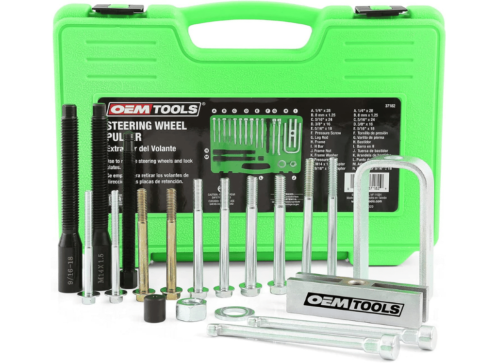 The OEMTOOLS Car Steering Wheel Puller is a must-have tool for mechanics and locksmiths. It is designed for most American domestic and import cars and light trucks. It allows you to easily remove steering wheels with or without telescoping tilt or steering columns. Additionally, the puller compresses the locking. This steering wheel puller comes in a nice case to store your complete set and stay organized.