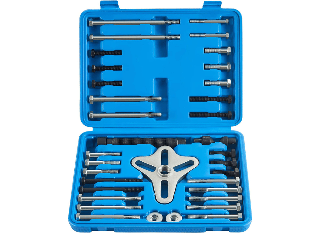 The Orion Motor Tech Harmonic Balancer Puller Kit is the ideal automotive repair and maintenance solution. This tool kit comes with a comprehensive set of 49 pieces, including a steel yoke, pressure screw, adaptors, and 30 bolts in different SAE and metric sizes to satisfy your various needs. The 4-slot yoke allows you to use it for two or three-slot operations easily. With this gear puller kit, you can easily remove universal harmonic balancers, gear pulleys, steering wheels, and crankshaft pulleys for reliable performance anytime. Get your own Orion Motor Tech Tool Kit today for stress-free automotive repairs!