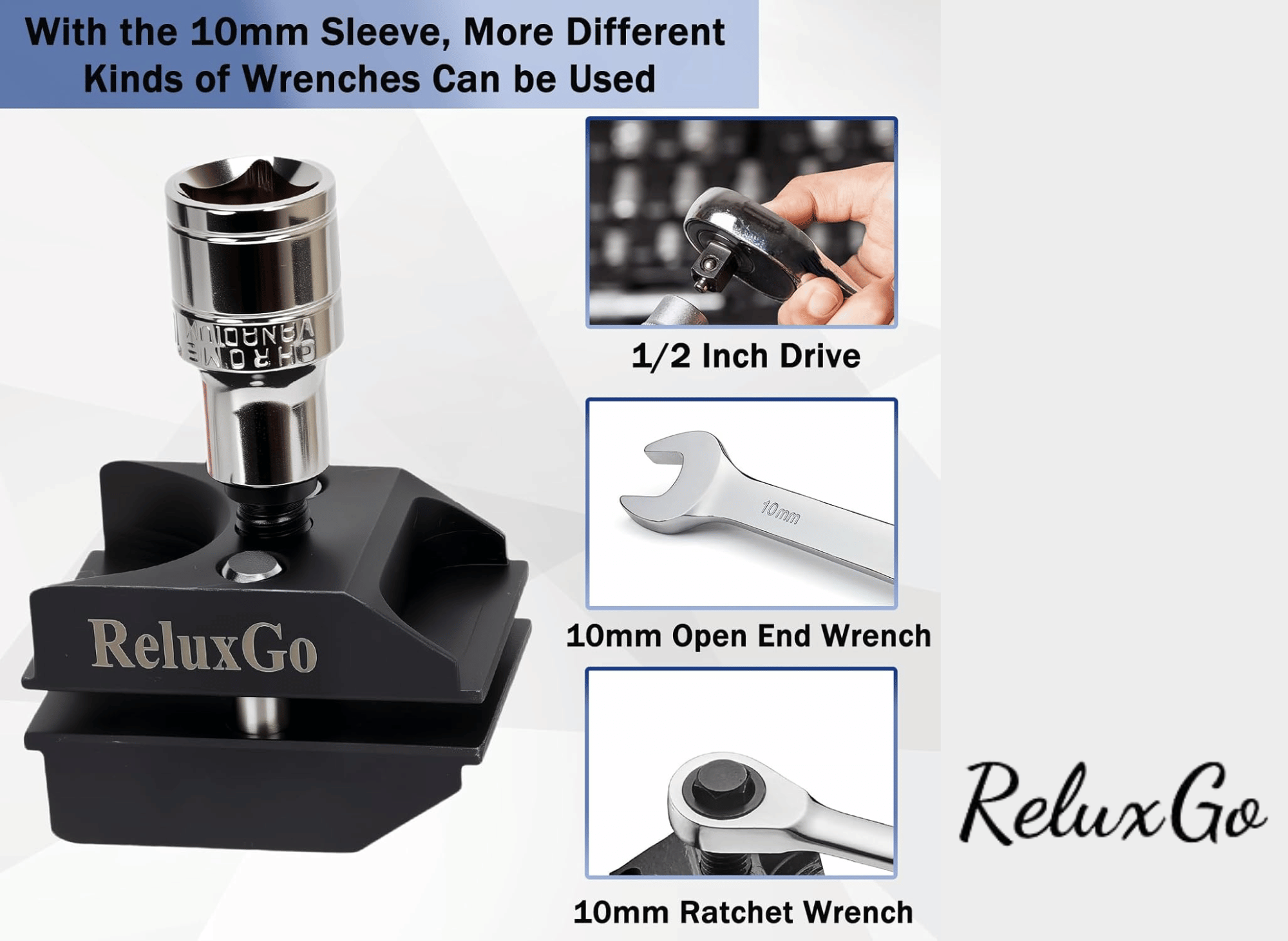 The ReluxGo tool is engineered for simplicity. Its compact, single-piece design makes it easy to handle in the tight confines of a wheel well. The operating principle is straightforward: insert the bit into the knuckle's slot and turn the 10mm hex head.