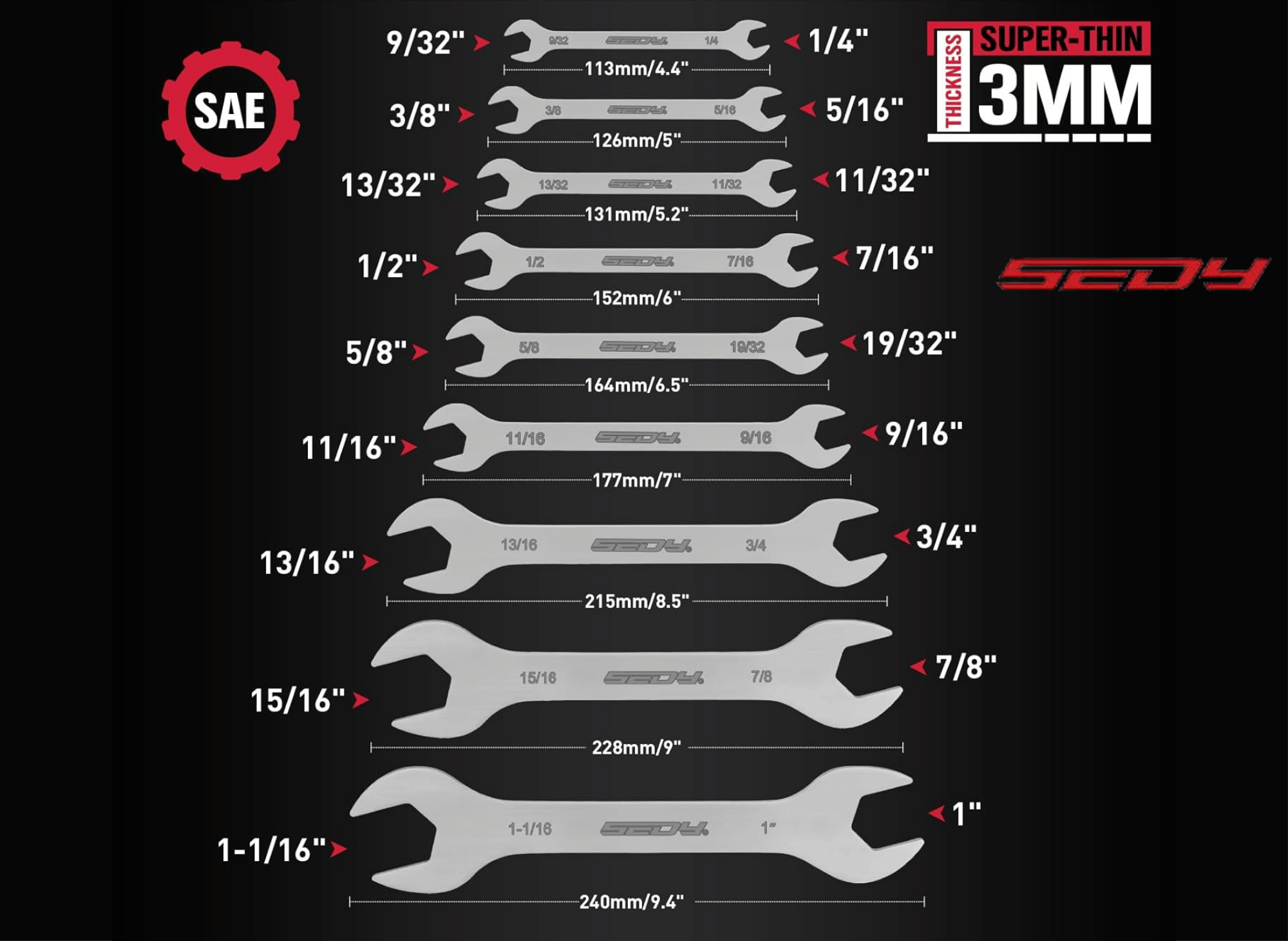 SEDY 19-Piece Super Thin Open-End Wrench Set