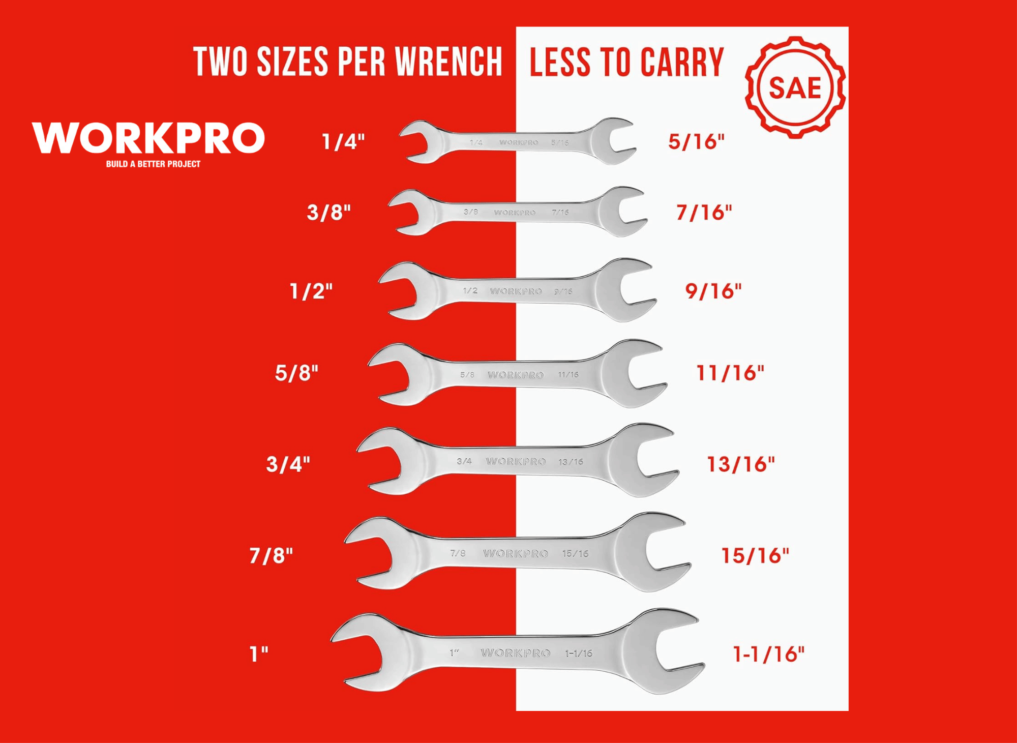 Sometimes you don't need a massive set; you just need specific SAE sizes for a specific job. WORKPRO offers a concise 7-piece set that focuses on quality over quantity. These wrenches are highly rated for their durability and fit. While smaller in piece count, it covers the essential SAE sizes needed for many American-made machinery and automotive applications.