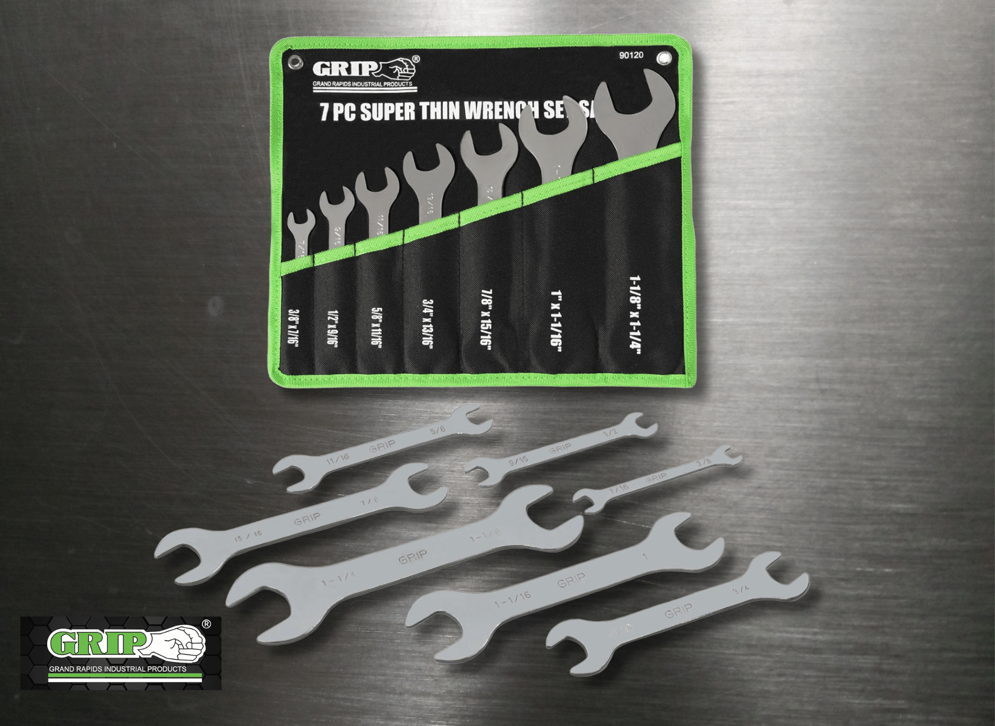 The Grip Super-Thin SAE Wrench Set (7-Piece) is a versatile and durable toolset designed for tight and confined spaces where traditional wrenches cannot reach. Its thin yet strong design, combined with high-quality materials, makes it a reliable choice for various mechanical tasks.