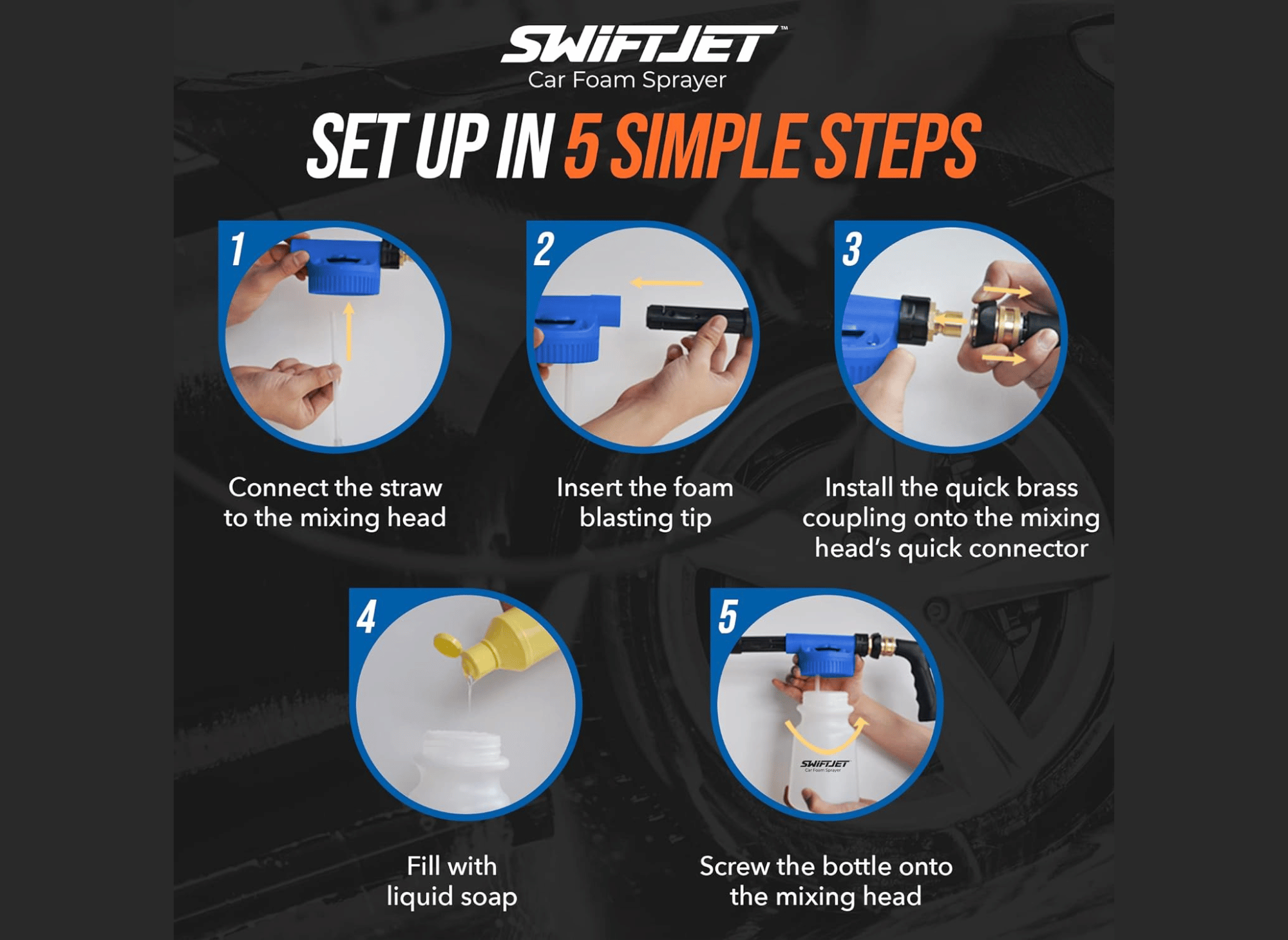 Using the SwiftJet Foam Gun couldn’t be simpler! Follow these steps for a superior car washing experience: