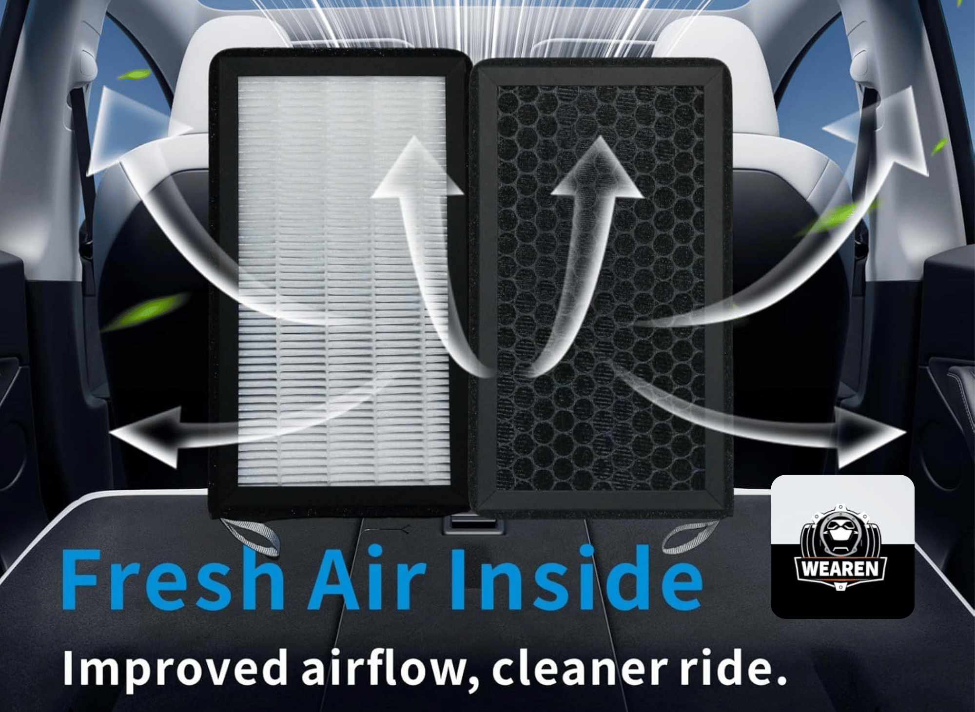 Upgrade your Tesla with the WEAREN air filter. HEPA filtration, activated carbon, and easy installation for cleaner air and better health.