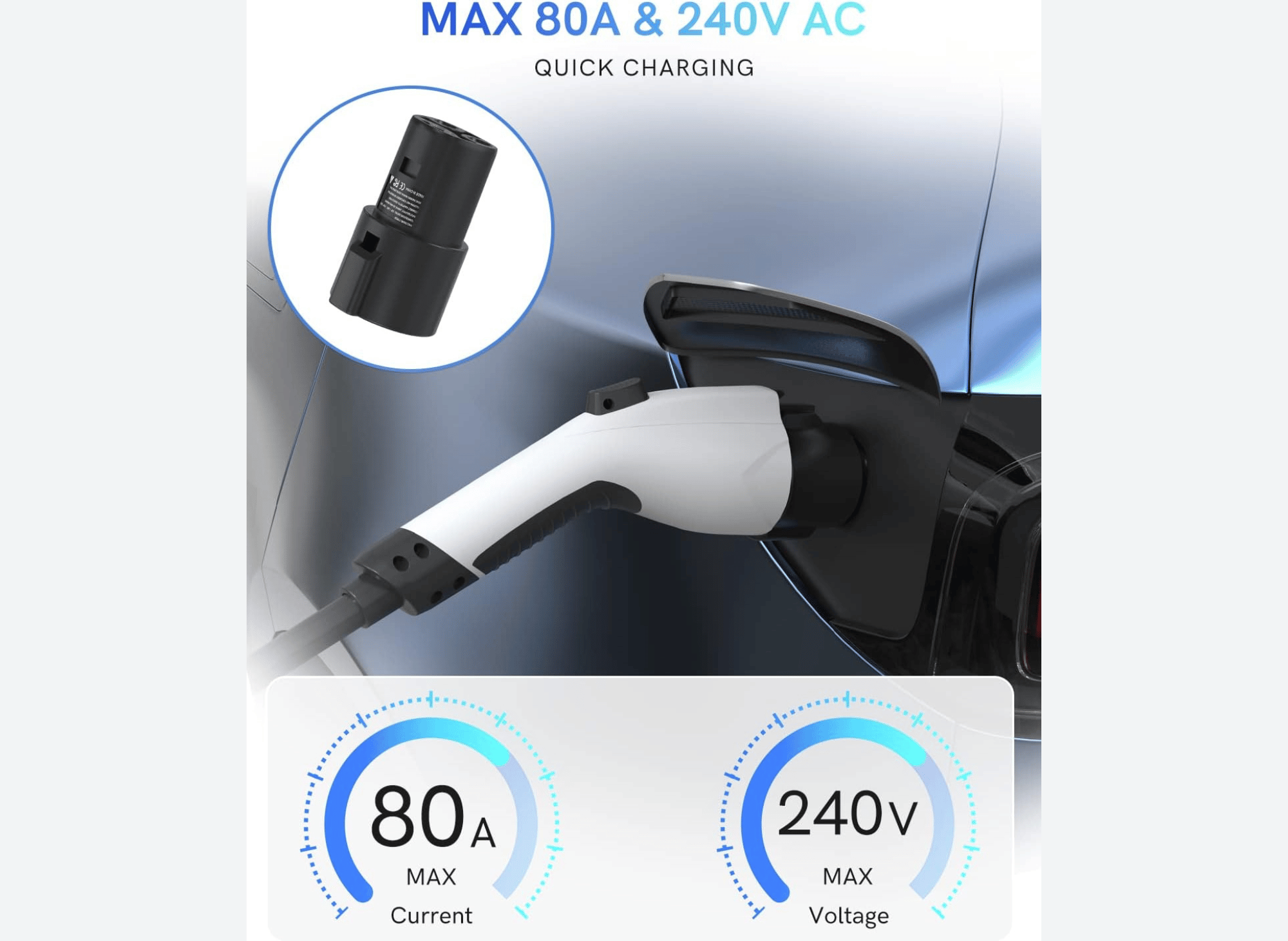 This adapter makes charging faster and more efficient. Its fast charging speed of up to 80A and compatibility with both Level 1 and Level 2 EV chargers make it a great choice. Its superconductive copper alloy wire and pilot signal pin ensure stable and safe charging.