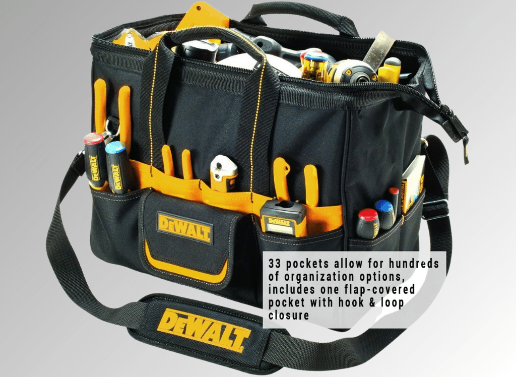 - Durable Design: The DEWALT Pocket Tool Bag is constructed with abrasion-resistant rubber feet, ensuring longevity and protection from wear and tear.