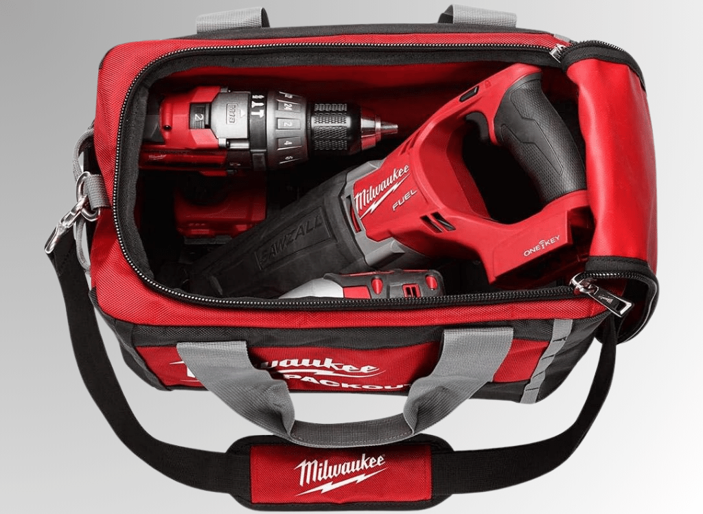 - Durability: With its all-metal hardware and 1680D ballistic material, the Milwaukee 15 in. PACKOUT Tool Bag is designed to withstand harsh job site environments.