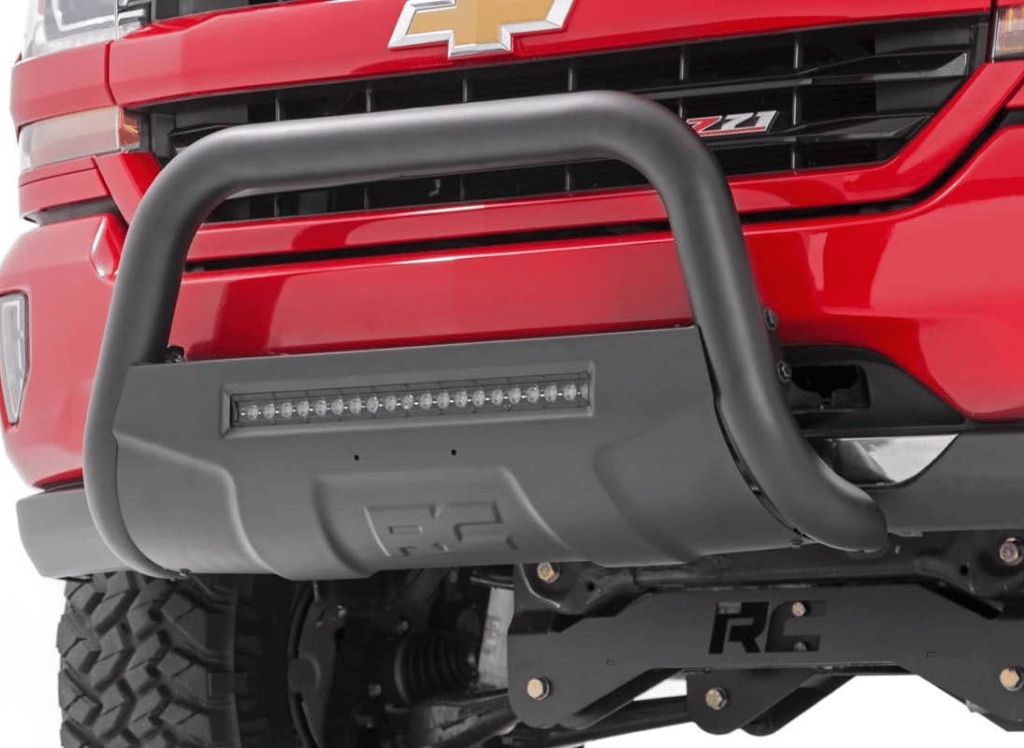 Rough Country has created the perfect solution for those looking to add a rugged, stylish look and powerful lighting to their vehicle. The Black LED Bull Bar with Integrated 20" RC LED Light Bar is designed to provide superior protection while illuminating your path.