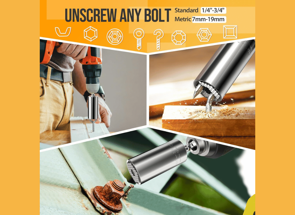 This universal super socket tool is not limited to standard bolts and nuts. It has been carefully crafted to grip onto most 1/4" to 3/4" (7mm to 9mm) bolts, hex nuts, screws, and even odd-shaped heads with over 125 lbs of torque. This means you can easily tackle any task without searching for the perfect fit.