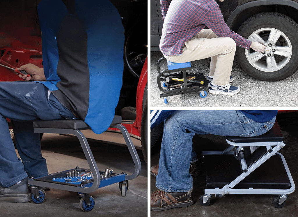 Additionally, it has an easily retractable pin that allows you to quickly change the angle of your seat without having to get up and move around. Whether you’re working on cars in your garage or doing home repairs around the house, this creeper seat will make any task easier and more enjoyable.