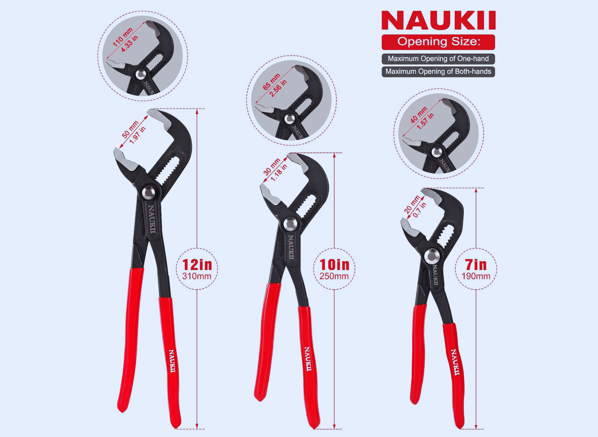 NAUKII 3-piece Water Pump Pliers Set