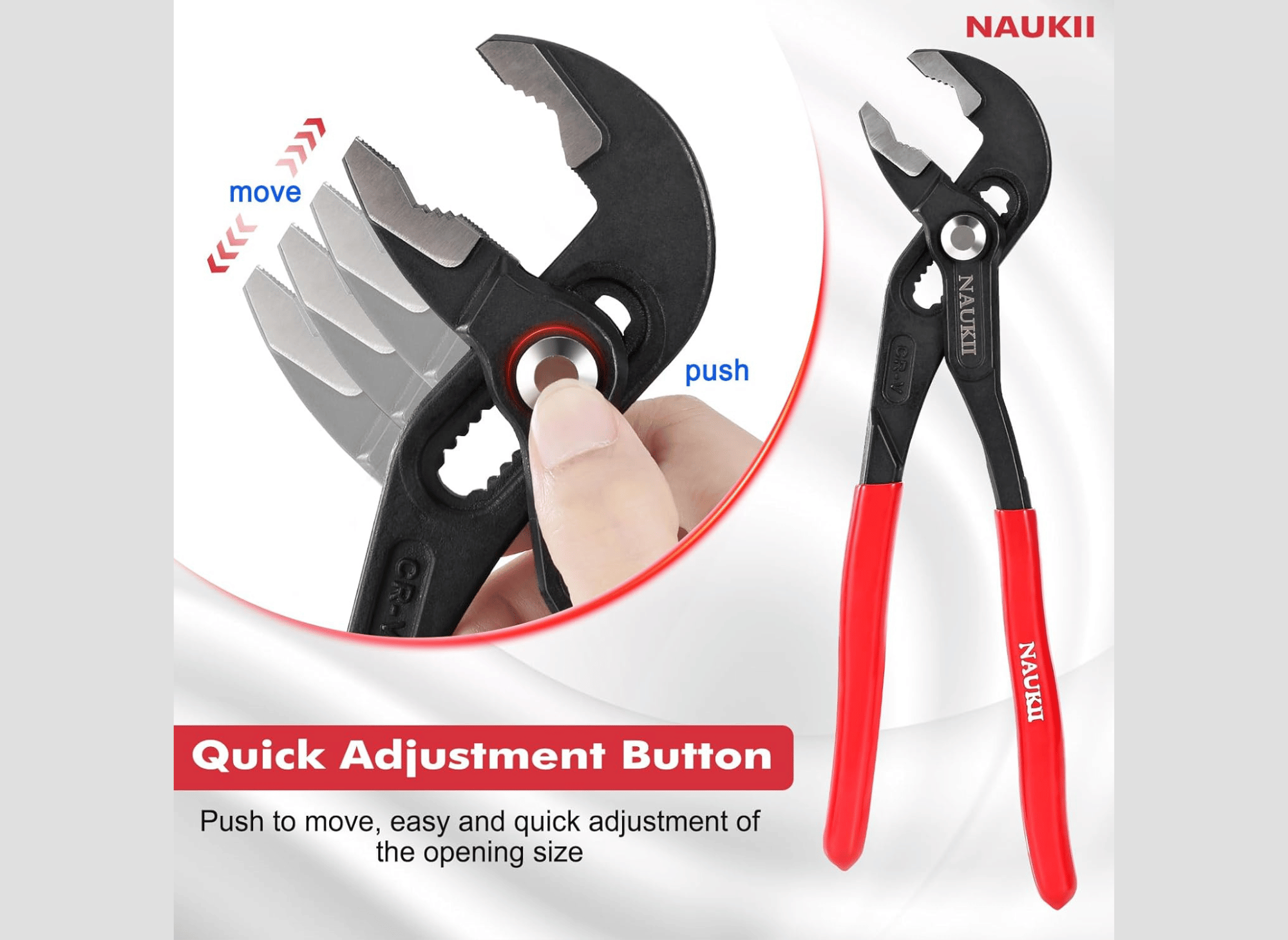 Traditional adjustable pliers, such as channel lock pliers, often require both hands to resize, interrupting your workflow and forcing you to reposition your grip. The NAUKII set’s quick-adjustment mechanism maintains your working position while adapting to different tasks.