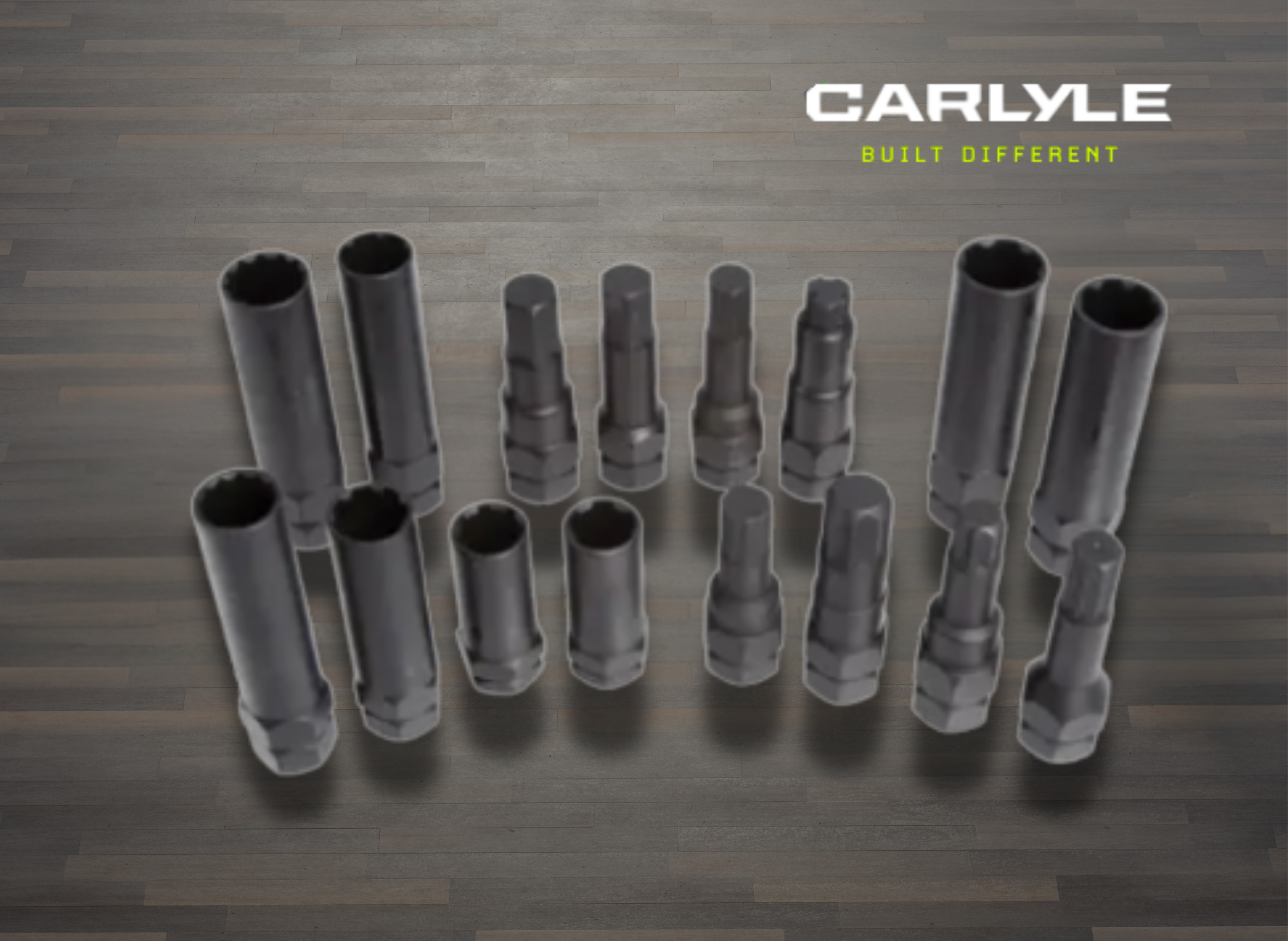 The Carlyle Tools set was designed specifically to remove locking lug nuts on aftermarket wheels. The set comes with both standard SAE and metric pieces that can be used on spline, star, hex, and fluted hex fasteners.