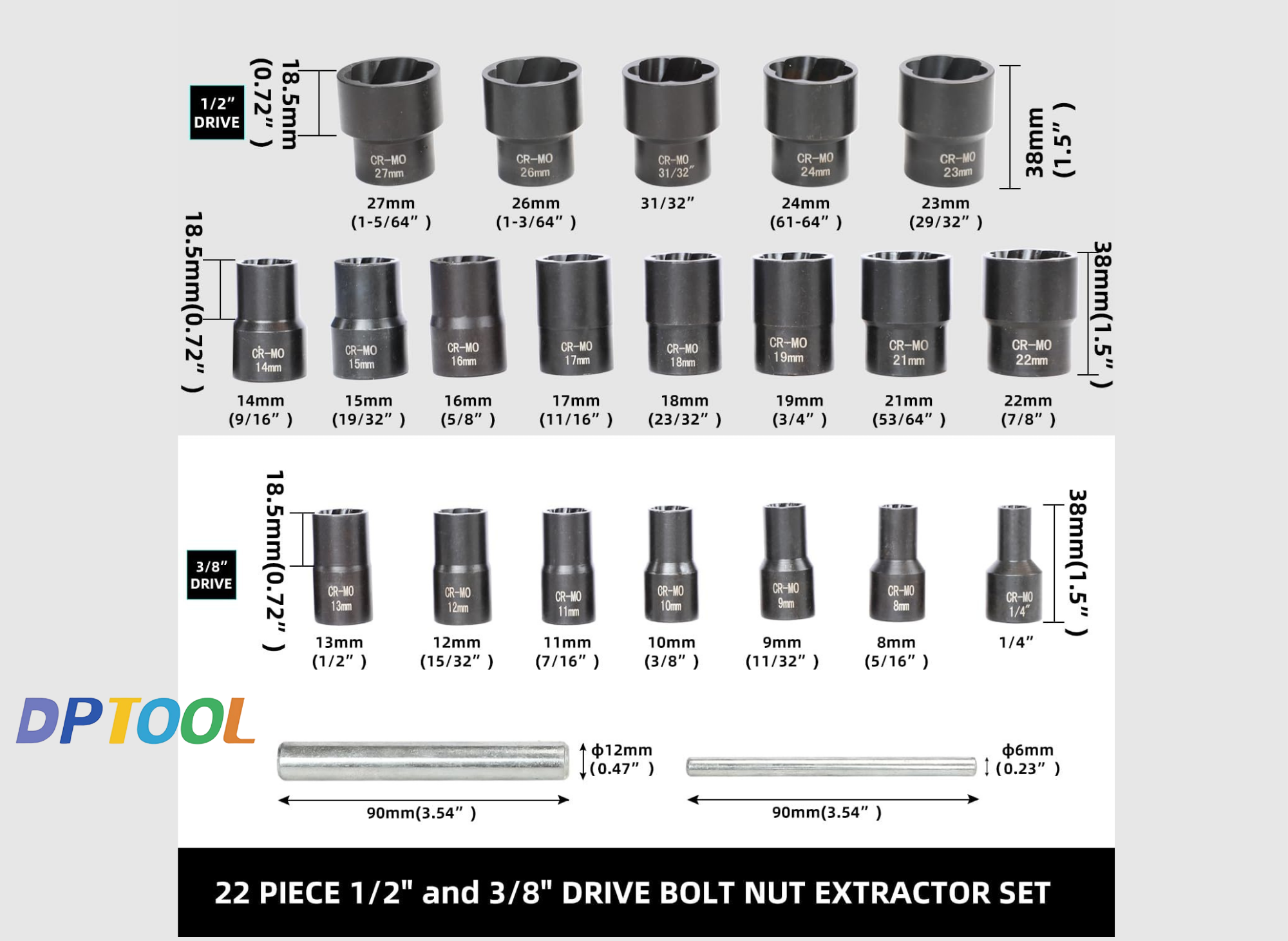 DPTOOL 22 Piece Bolt Nut Extractor Set