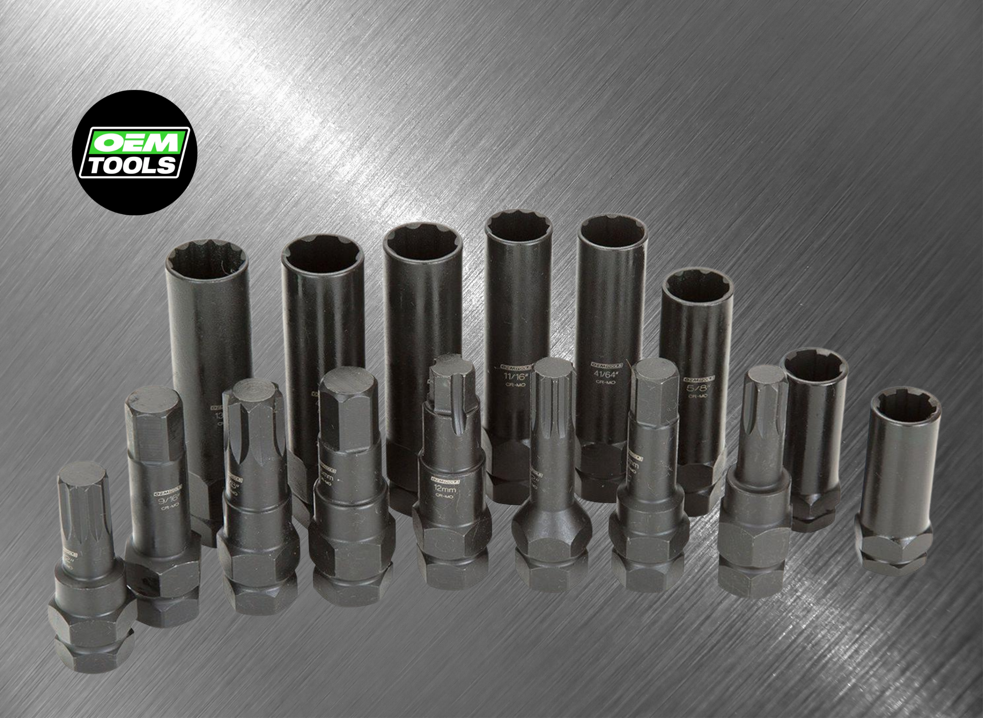 The OEM Automotive Tools 24447 set is made of Vanadium steel with a black oxide finish. It comes with a convenient carrying case and a descriptive chart to select the proper key socket easily. It is heavily favored for its extra-long lug removers that keep wrenches away from the rim.
