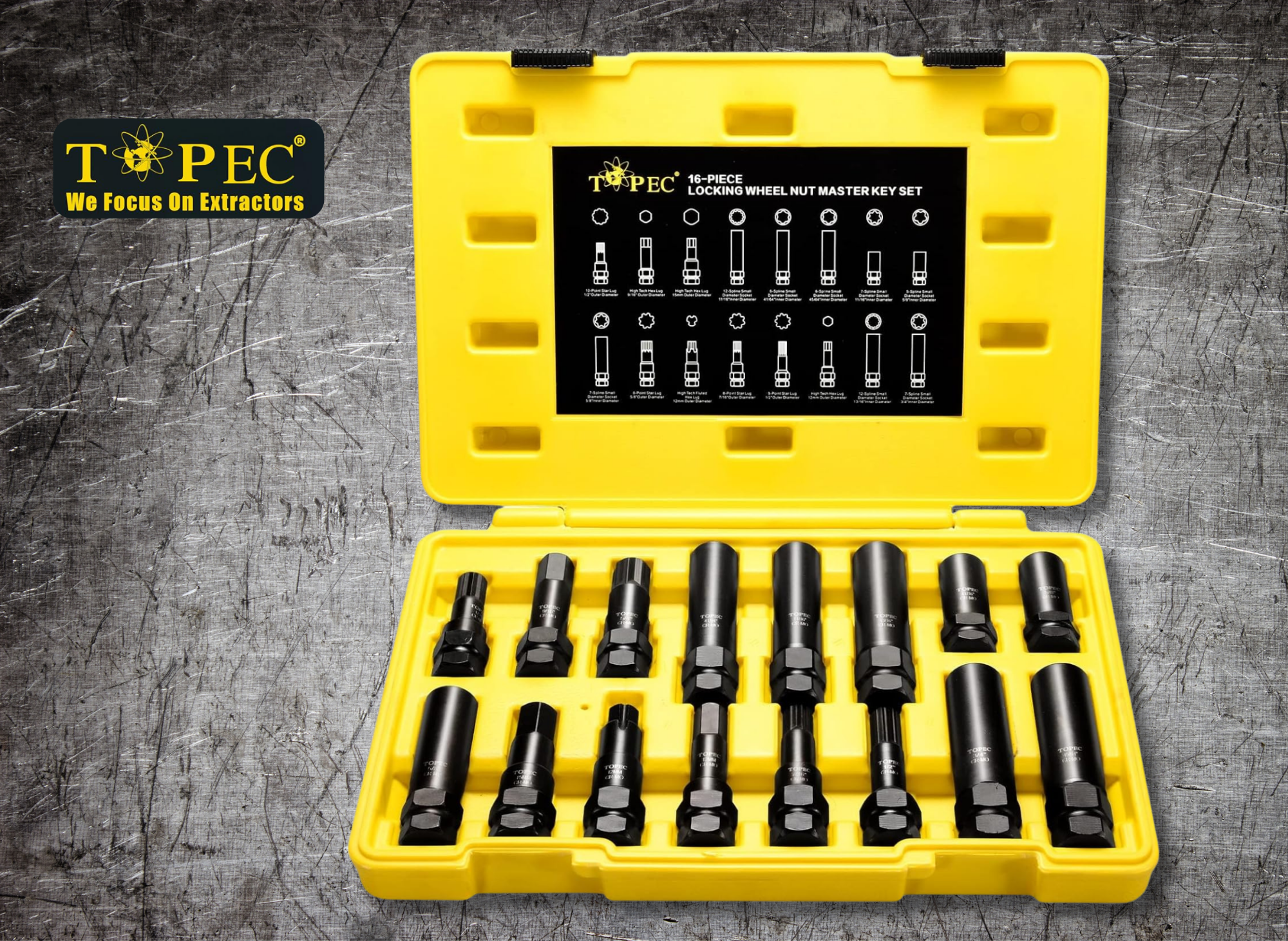 Topec 16-Piece Locking Lug Nut Master Key Set