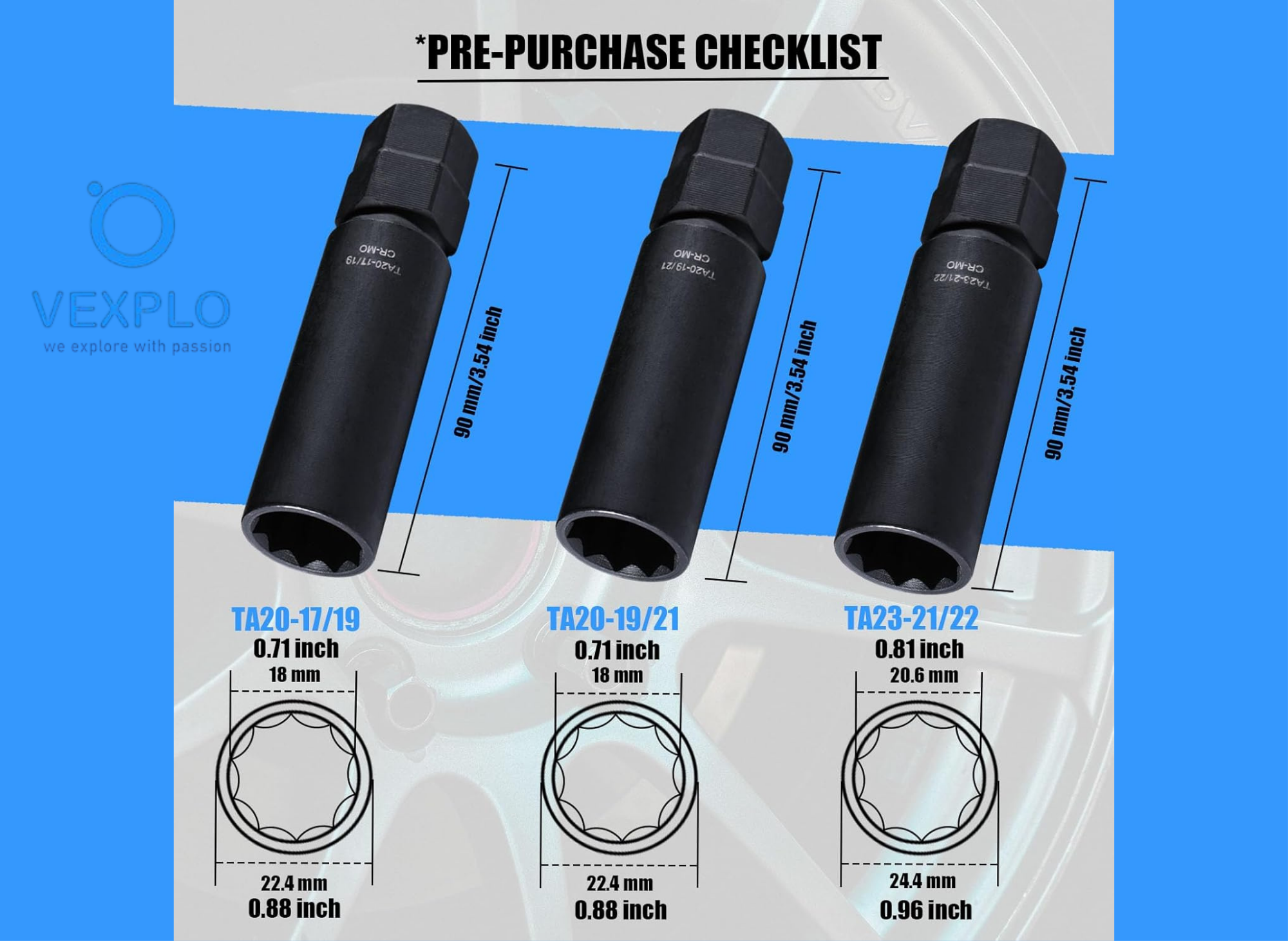 This kit features an ultra-thin design key adapter, making it perfect for tight wheel recesses. However, it is strictly designed for White Knight applications. It is not the right choice if you need a universal tool.