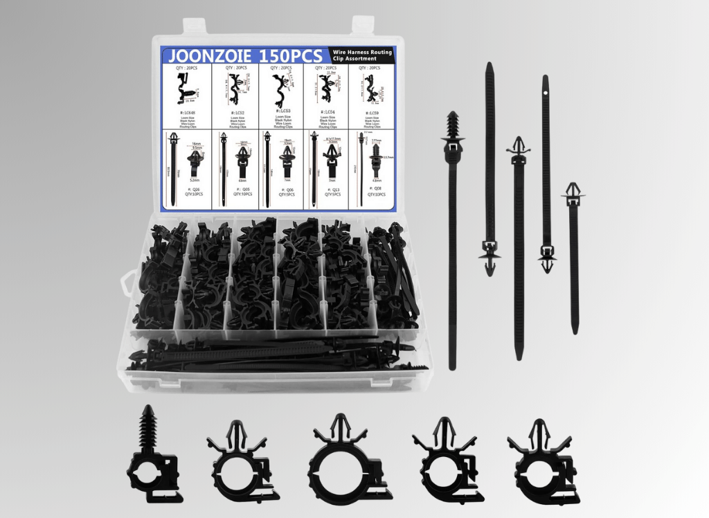 Joonzoie 150PCS Wire Loom Clips is a must-have for any automotive enthusiast or mechanic. This comprehensive kit contains 150 pieces of high-quality nylon clips in various sizes, designed to fit various vehicles, including Honda, GM, Mazda, Jeep Wrangler, and Ford models.
