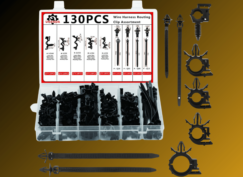 With 130 pieces, including 90-car wire loom routing clips and 40-car cable ties, this comprehensive kit has everything you need for efficient and effective wire management. Say goodbye to the hassle of searching for individual clips or making do with subpar alternatives.