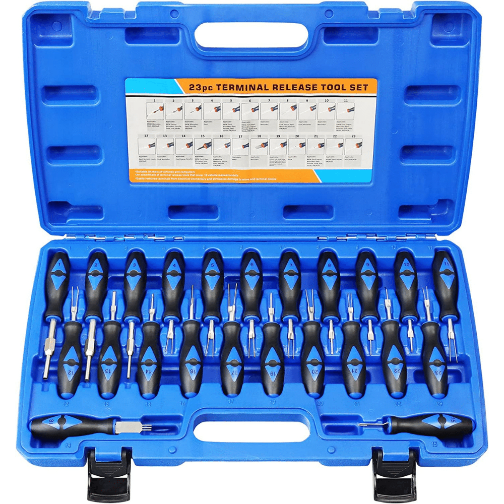 If you're looking for a damage-free way to release terminals from electrical connectors, the YSTOOL Terminal Release Kit is precisely what you need. This 23-piece release kit includes all the tools you need to safely and efficiently remove terminal pins without damaging wires or terminal blocks. The kit is suitable for many models from home and abroad, including many American, European, and Japanese cars and trucks. Whether working on a Ford, BMW, Mercedes, Opel, Porsche, Audi, or Jaguar, this kit has the right tool. This is ideal for your garage if you do electrical work on cars. Don't risk damage to your wiring - get the YSTOOL Terminal Release Kit and do the job right.